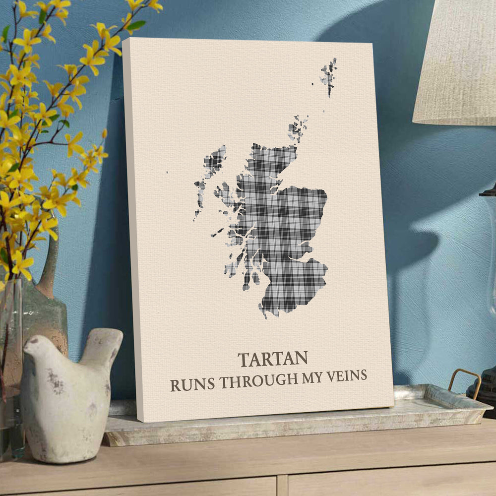 Celebrate your Scottish heritage with this striking canvas print featuring the map of Scotland filled with Douglas Grey Modern tartan, paired with the bold phrase: “Tartan Runs Through My Veins.” Whether you're honoring your clan roots or gifting a loved one, this artwork brings deep cultural pride and Highland elegance to your space.
