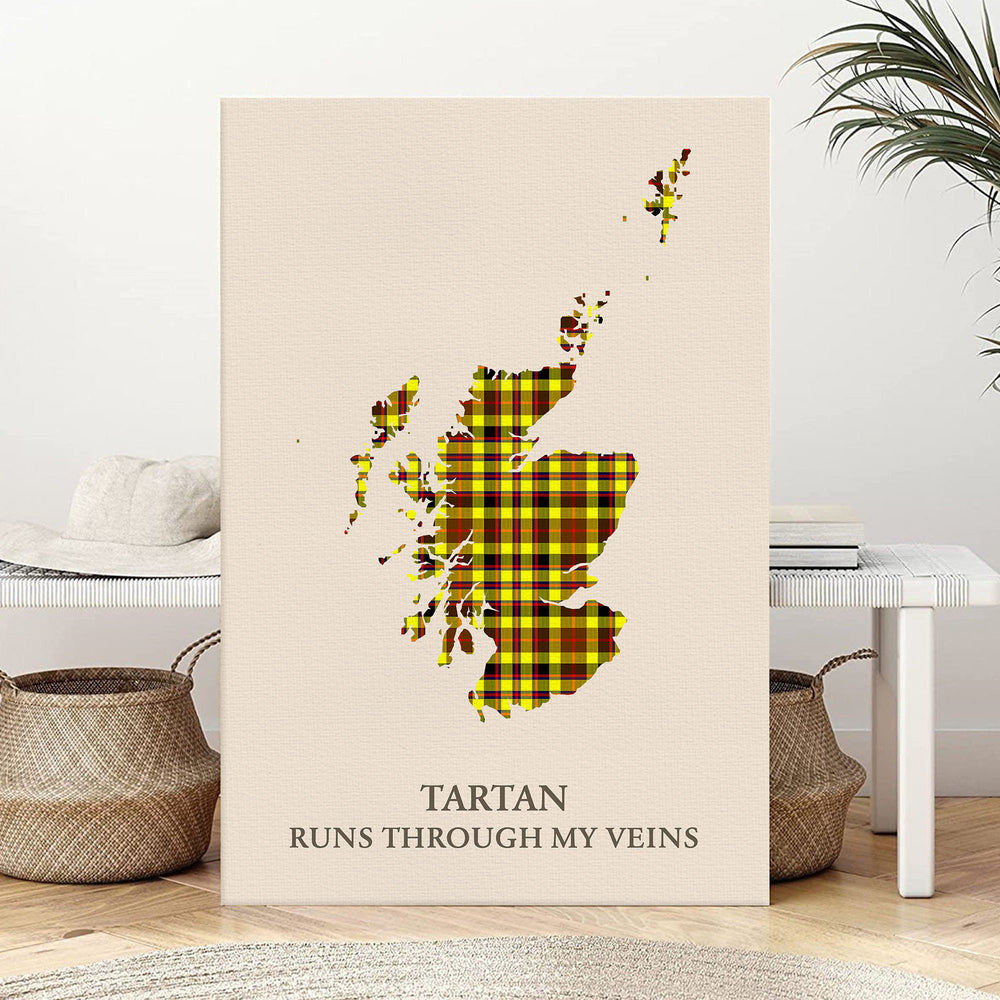 Jardine Tartan Scotland Map Canvas – “Tartan Runs Through My Veins” Wall Art