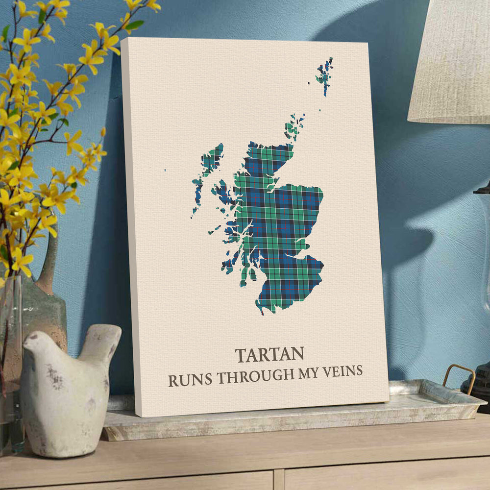 Leslie Hunting Ancient Tartan Scotland Map Canvas – “Tartan Runs Through My Veins” Wall Art
