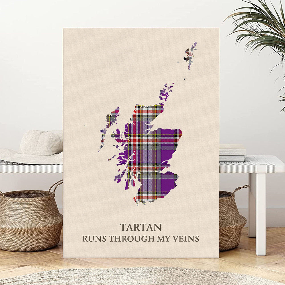 Celebrate your Scottish heritage with this striking canvas print featuring the map of Scotland filled with Lockwood tartan, paired with the bold phrase: “Tartan Runs Through My Veins.” Whether you're honoring your clan roots or gifting a loved one, this artwork brings deep cultural pride and Highland elegance to your space.
