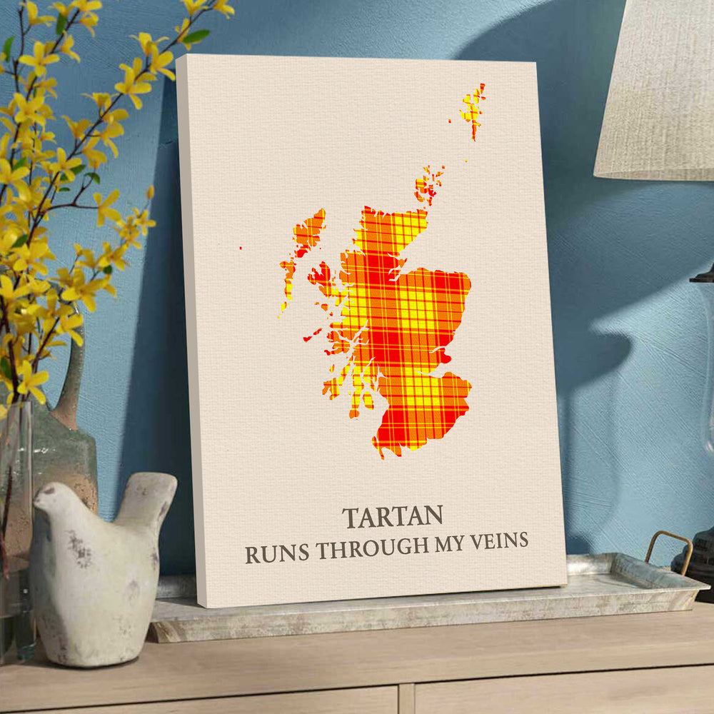 Celebrate your Scottish heritage with this striking canvas print featuring the map of Scotland filled with MacMillan tartan, paired with the bold phrase: “Tartan Runs Through My Veins.” Whether you're honoring your clan roots or gifting a loved one, this artwork brings deep cultural pride and Highland elegance to your space.