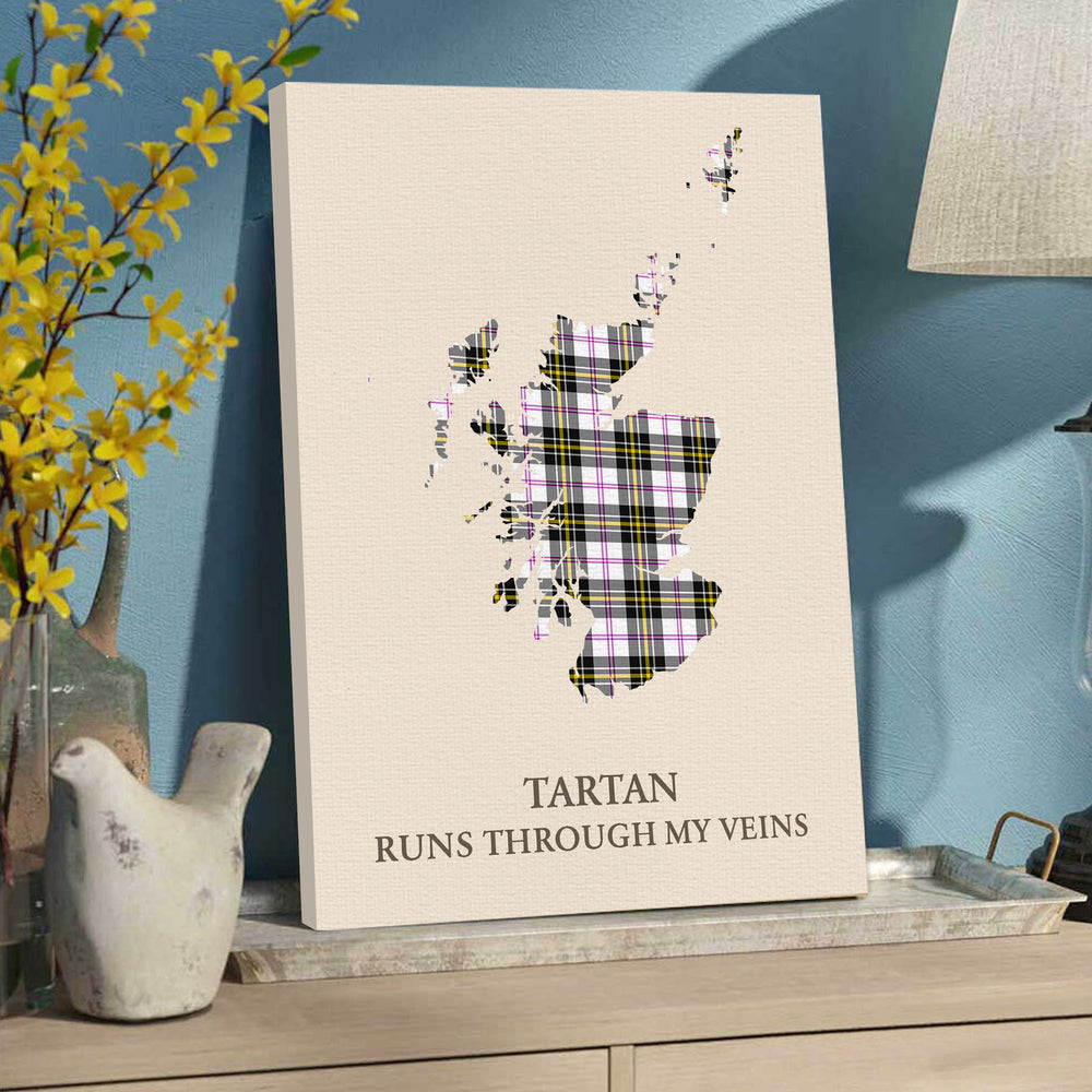 Celebrate your Scottish heritage with this striking canvas print featuring the map of Scotland filled with MacPherson Dress Modern tartan, paired with the bold phrase: “Tartan Runs Through My Veins.” Whether you're honoring your clan roots or gifting a loved one, this artwork brings deep cultural pride and Highland elegance to your space.