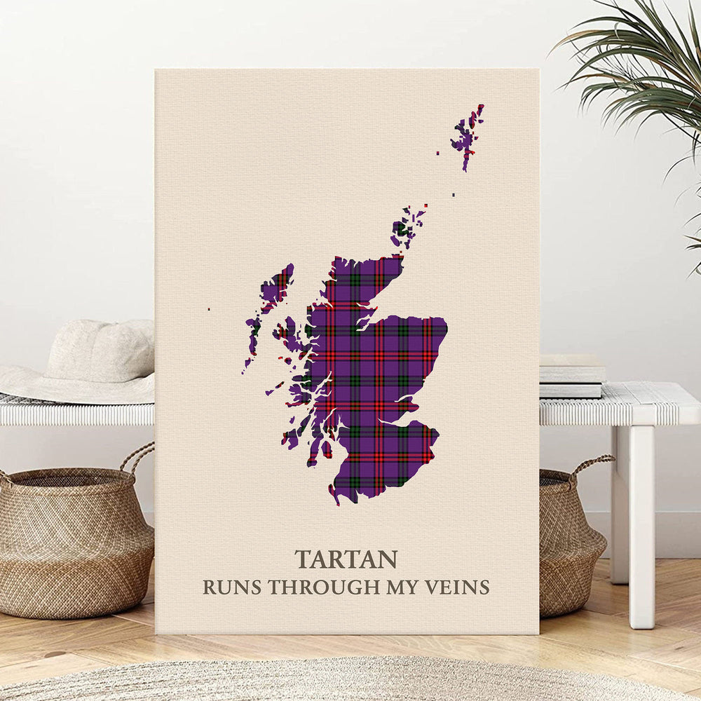 Celebrate your Scottish heritage with this striking canvas print featuring the map of Scotland filled with Montgomery Modern tartan, paired with the bold phrase: “Tartan Runs Through My Veins.” Whether you're honoring your clan roots or gifting a loved one, this artwork brings deep cultural pride and Highland elegance to your space.