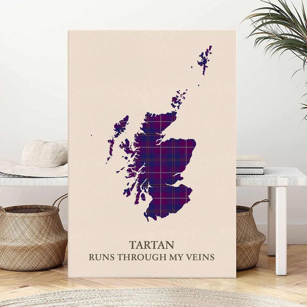 Celebrate your Scottish heritage with this striking canvas print featuring the map of Scotland filled with Pride of Glencoe tartan, paired with the bold phrase: “Tartan Runs Through My Veins.” Whether you're honoring your clan roots or gifting a loved one, this artwork brings deep cultural pride and Highland elegance to your space.