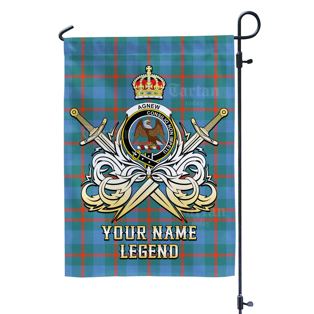 Custom Name Clan Agnew Ancient Tartan Garden Flag with Clan Crest and the Golden Sword of Courageous Legacy XF60