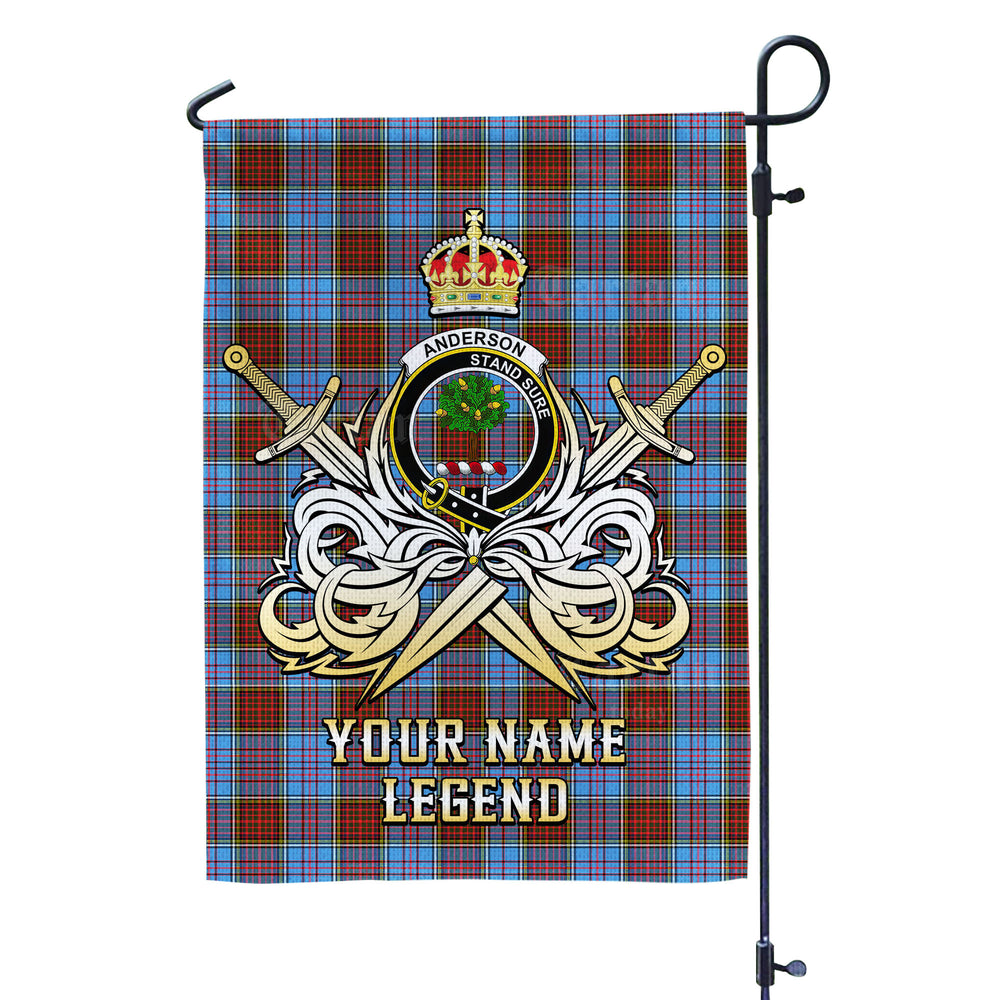 Custom Name Clan Anderson Modern Tartan Garden Flag with Clan Crest and the Golden Sword of Courageous Legacy LG42