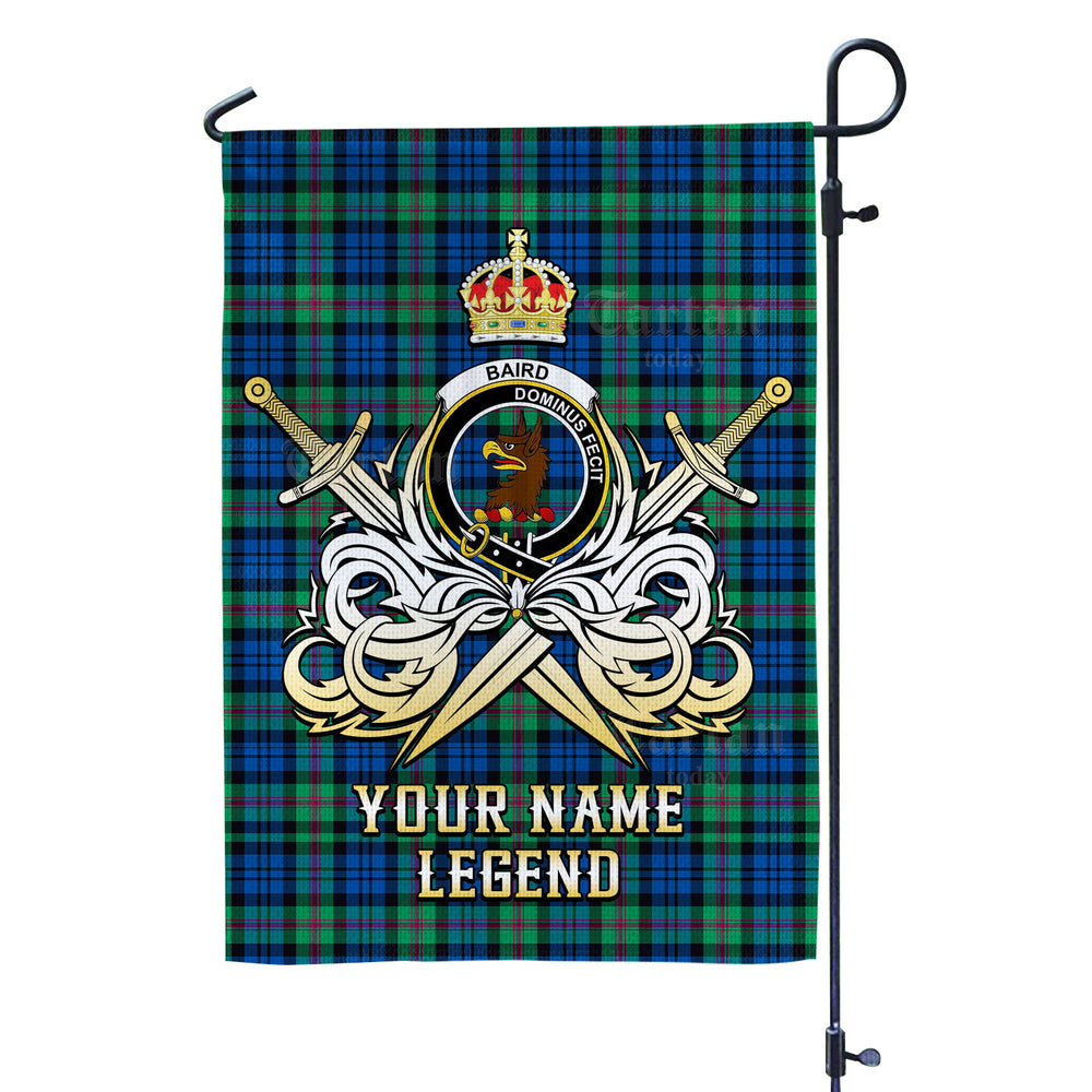 Custom Name Clan Baird Ancient Tartan Garden Flag with Clan Crest and the Golden Sword of Courageous Legacy EE14