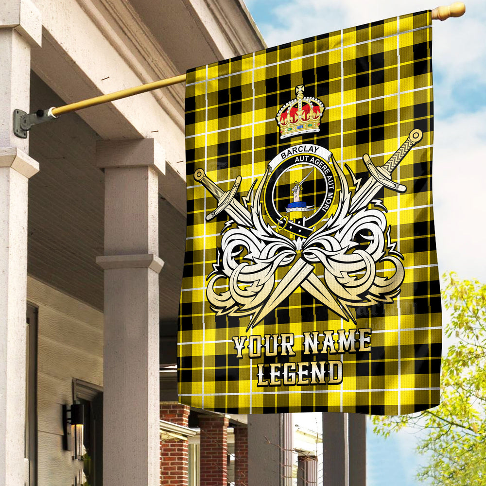 Custom Name Clan Barclay Dress Modern Tartan Garden Flag with Clan Crest and the Golden Sword of Courageous Legacy EO30