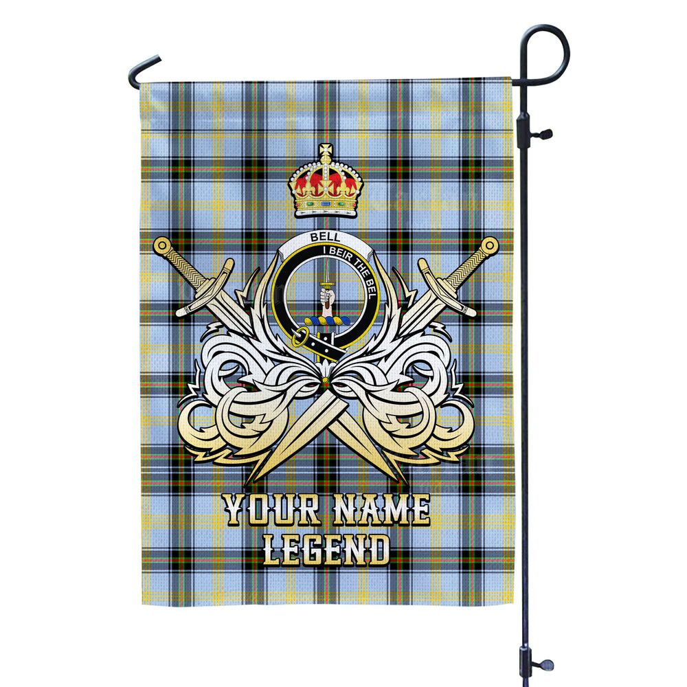 Custom Name Clan Bell of the Borders Tartan Garden Flag with Clan Crest and the Golden Sword of Courageous Legacy SG16