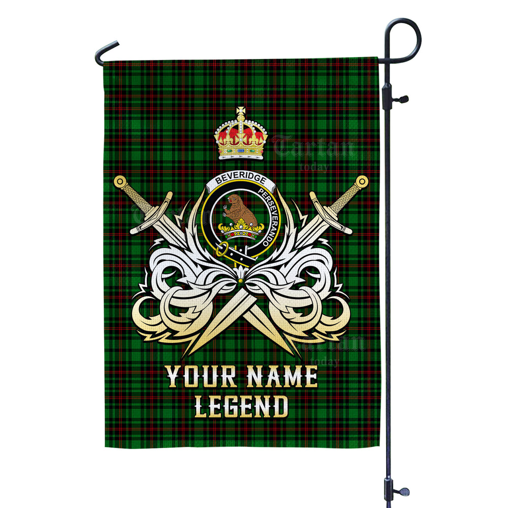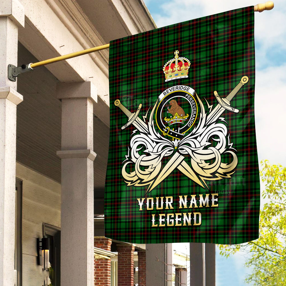 Custom Name Clan Beveridge Tartan Garden Flag with Clan Crest and the Golden Sword of Courageous Legacy NS81