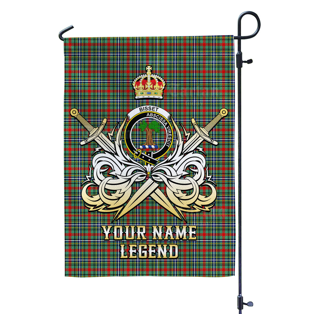Custom Name Clan Bisset 2 Tartan Garden Flag with Clan Crest and the Golden Sword of Courageous Legacy GZ67