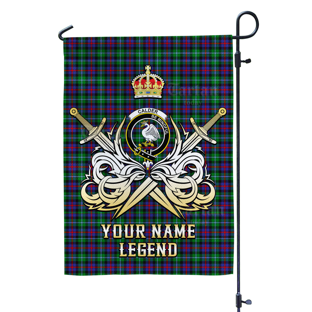 Custom Name Clan Calder Tartan Garden Flag with Clan Crest and the Golden Sword of Courageous Legacy IH61