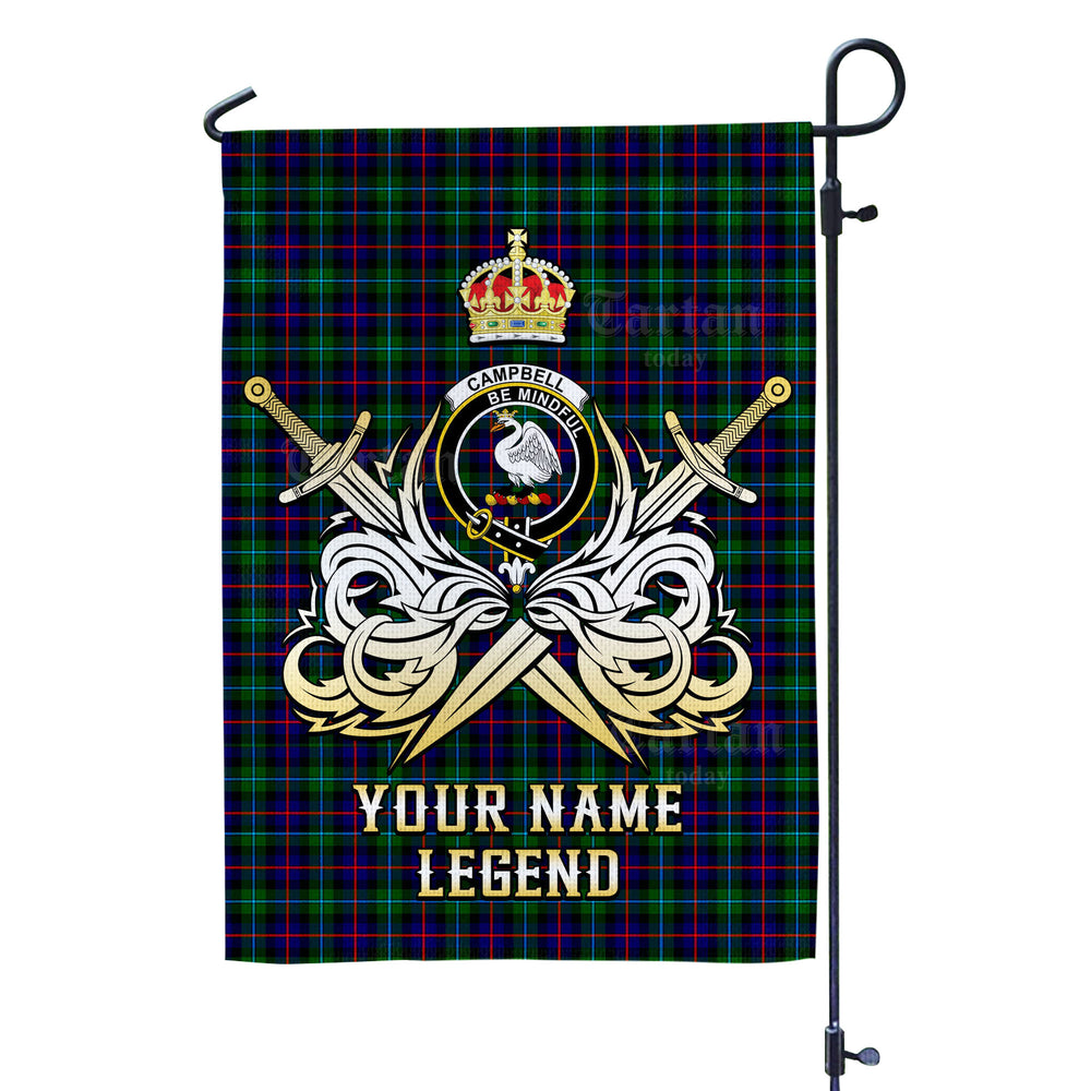 Custom Name Clan Campbel of Cawdor Modern Tartan Garden Flag with Clan Crest and the Golden Sword of Courageous Legacy NN30