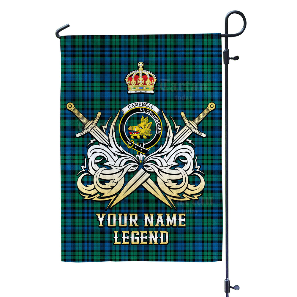 Custom Name Clan Campbell Ancient Tartan Garden Flag with Clan Crest and the Golden Sword of Courageous Legacy SA94