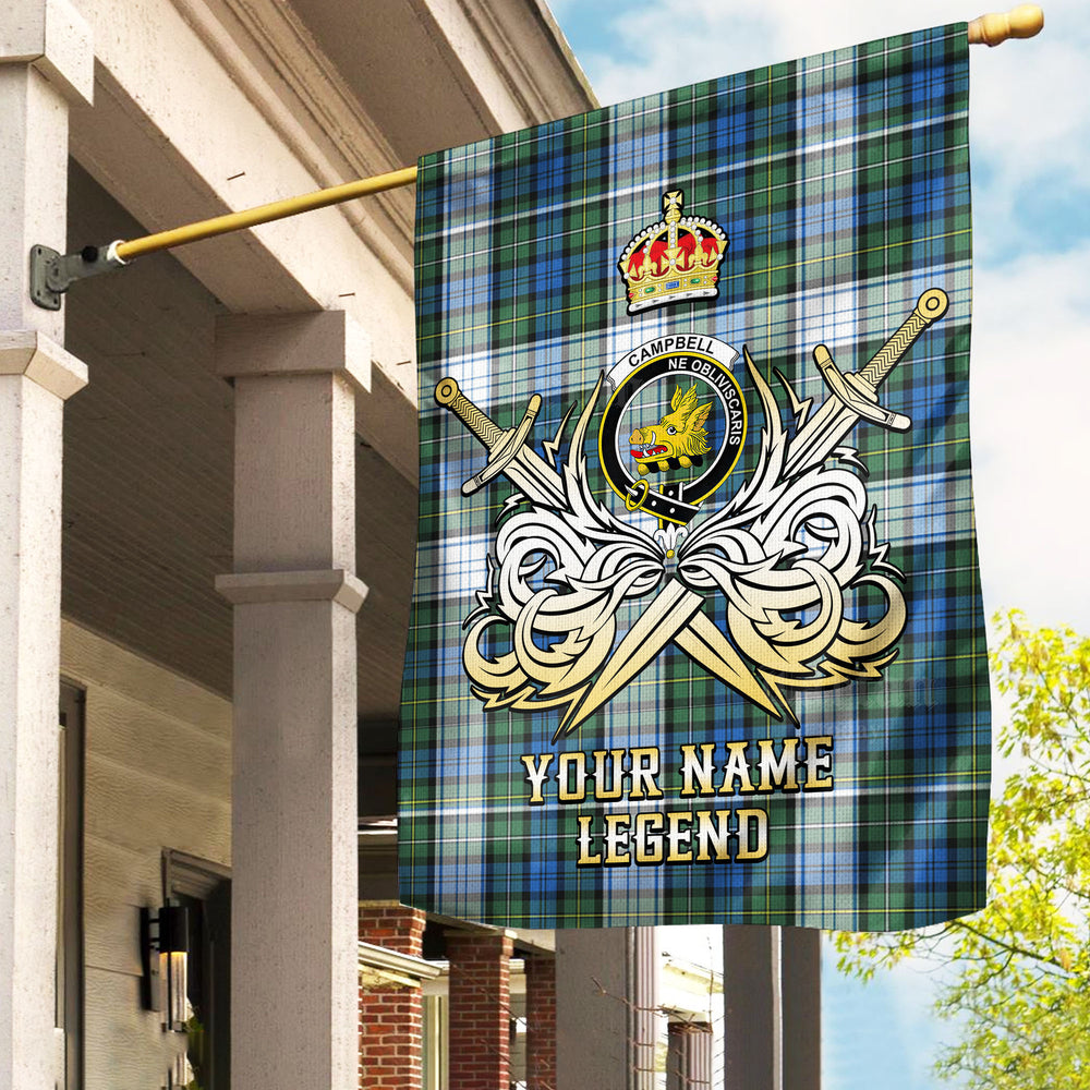 Custom Name Clan Campbell Dress Ancient Tartan Garden Flag with Clan Crest and the Golden Sword of Courageous Legacy BT72