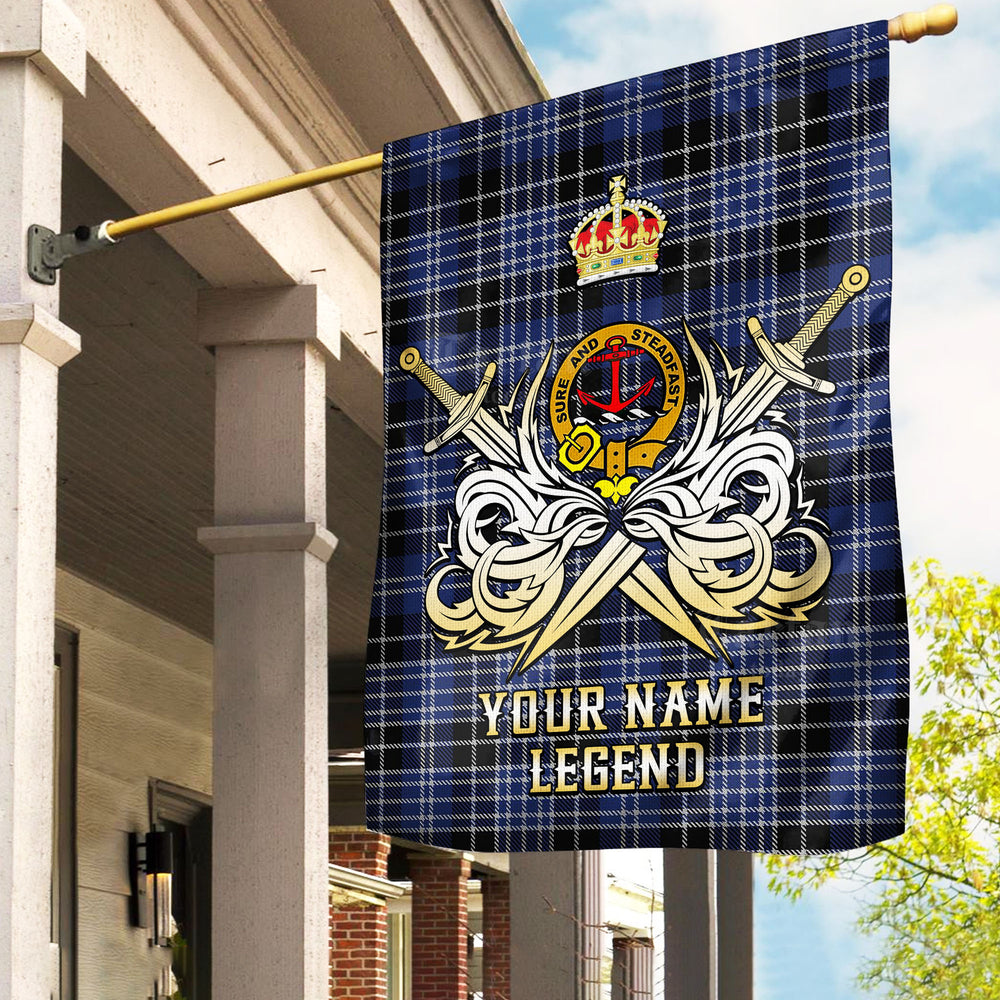 Custom Name Clan Clark 1 Tartan Garden Flag with Clan Crest and the Golden Sword of Courageous Legacy DR97
