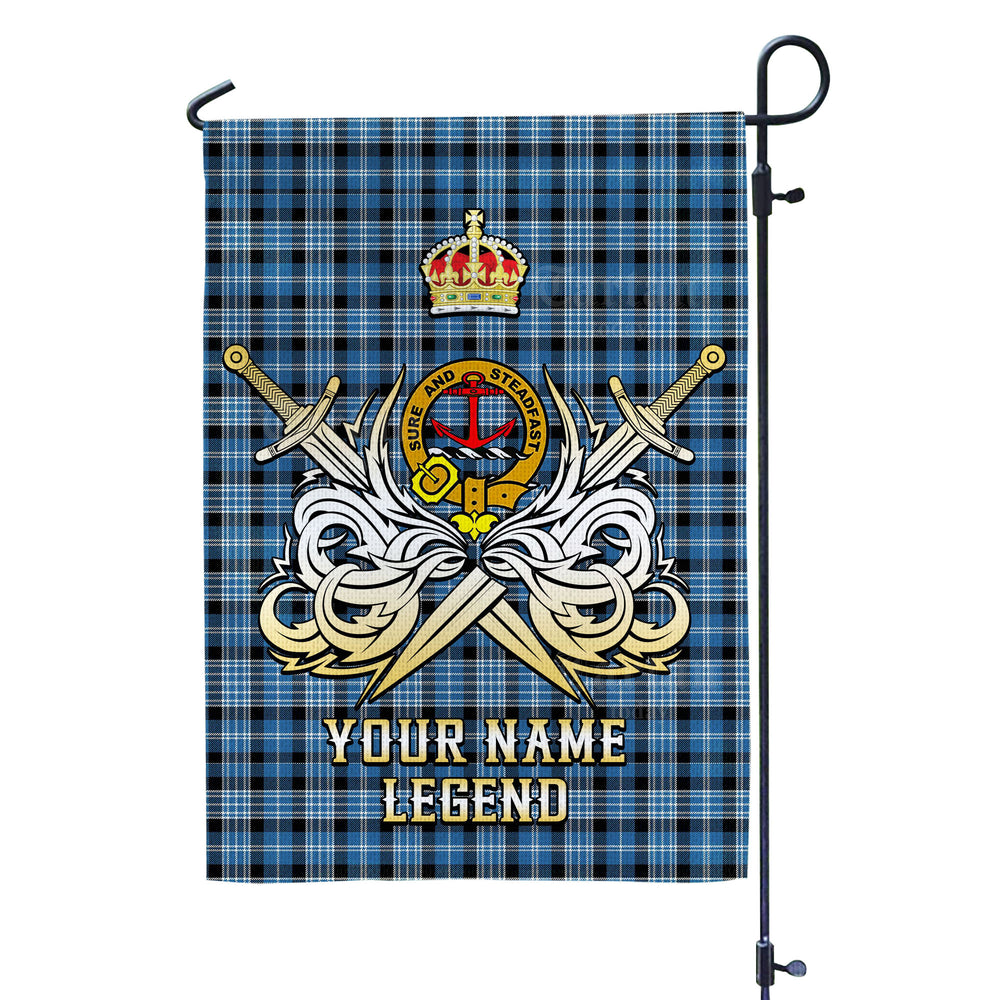 Custom Name Clan Clark Ancient Tartan Garden Flag with Clan Crest and the Golden Sword of Courageous Legacy JZ41