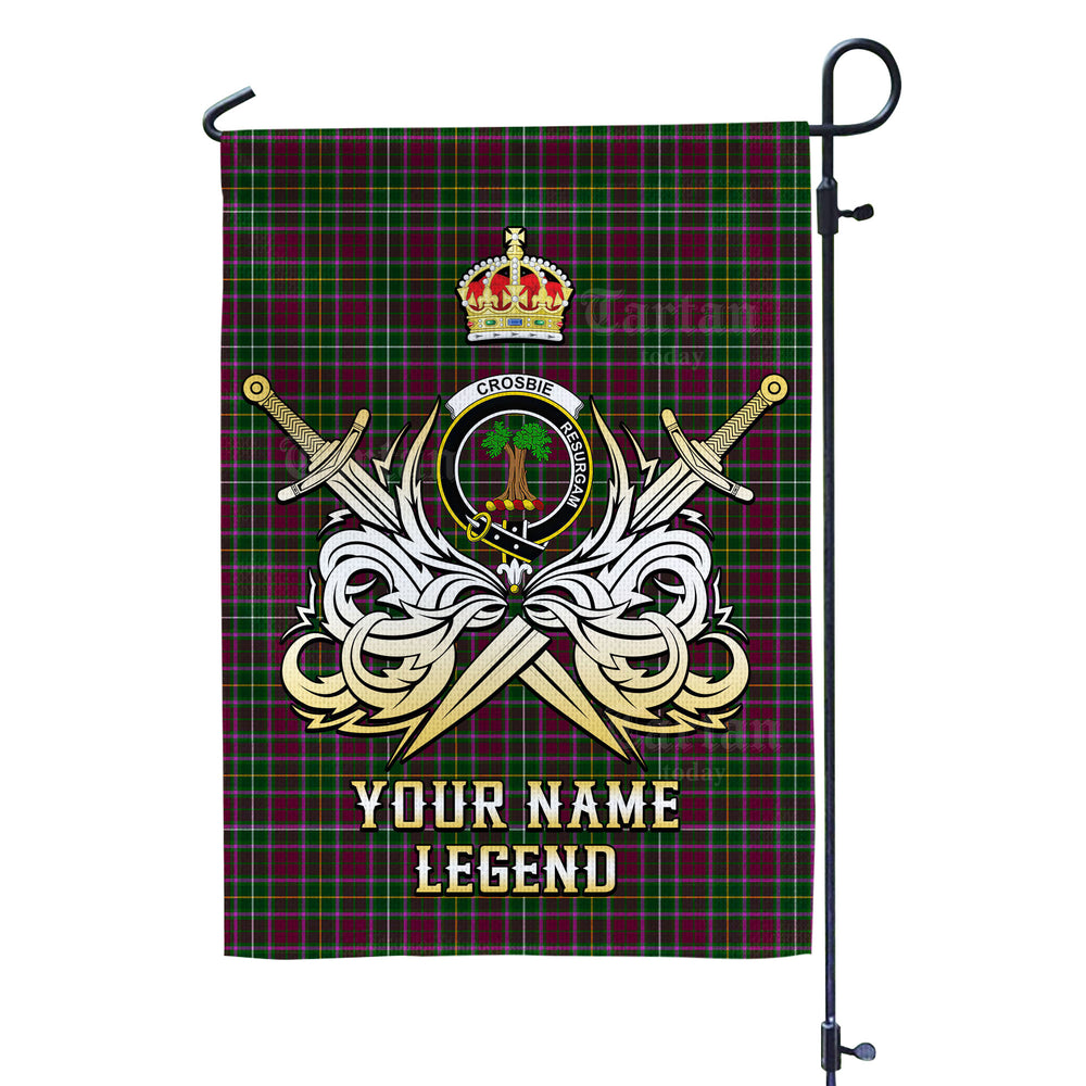 Custom Name Clan Crosbie Tartan Garden Flag with Clan Crest and the Golden Sword of Courageous Legacy HV47