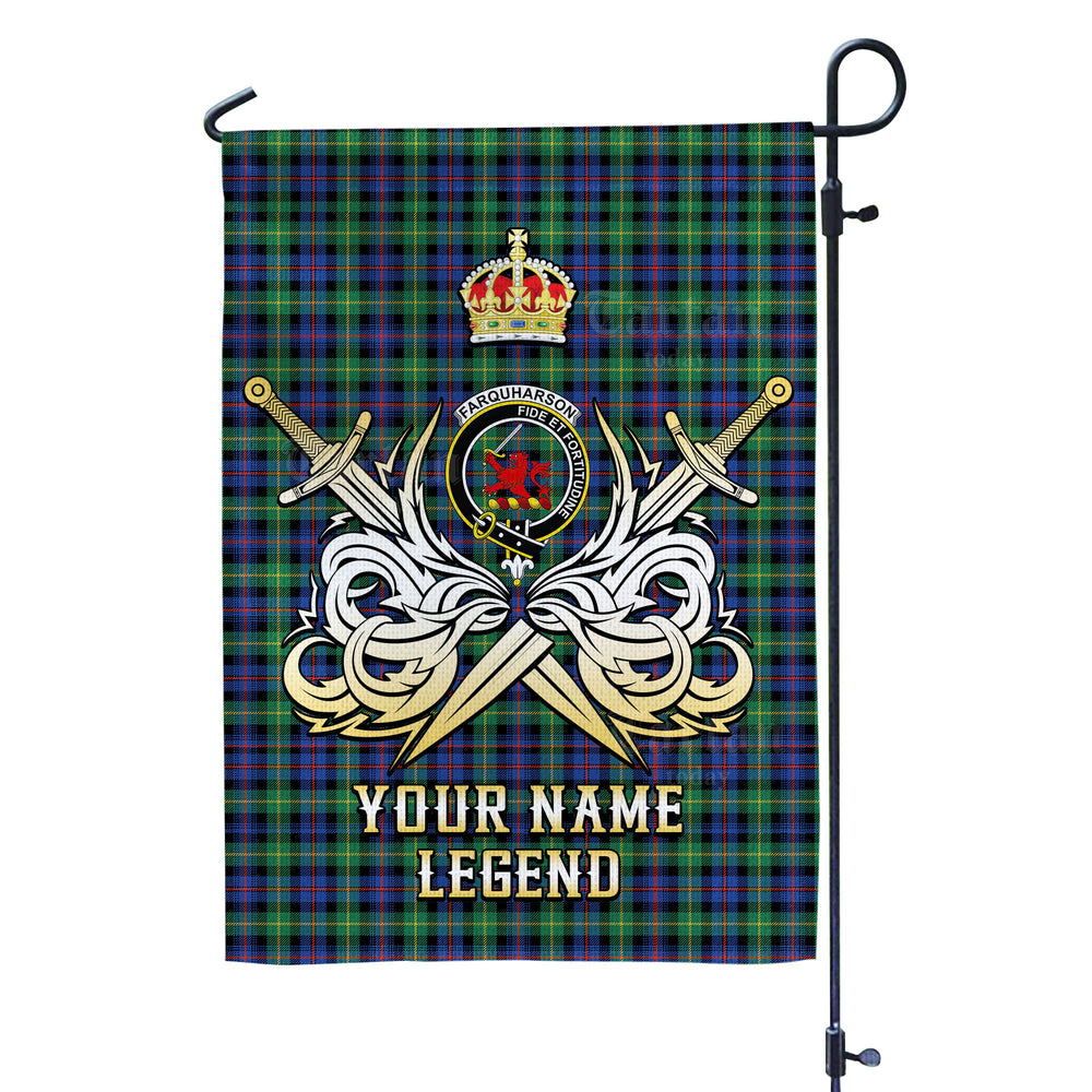 Custom Name Clan Farquharson Ancient Tartan Garden Flag with Clan Crest and the Golden Sword of Courageous Legacy UI34