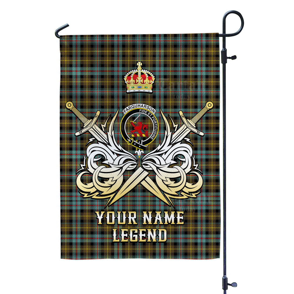 Custom Name Clan Farquharson Weathered Tartan Garden Flag with Clan Crest and the Golden Sword of Courageous Legacy MT45