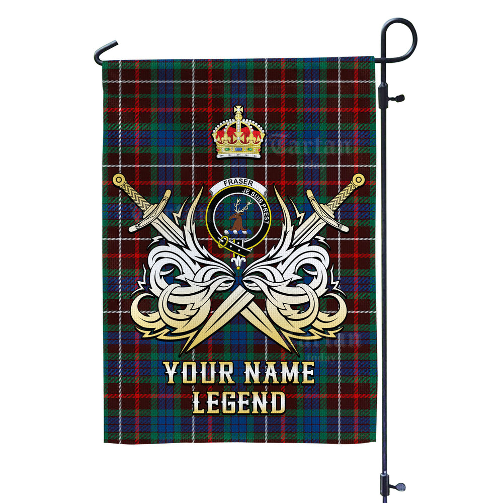Custom Name Clan Fraser Hunting Ancient Tartan Garden Flag with Clan Crest and the Golden Sword of Courageous Legacy RC81