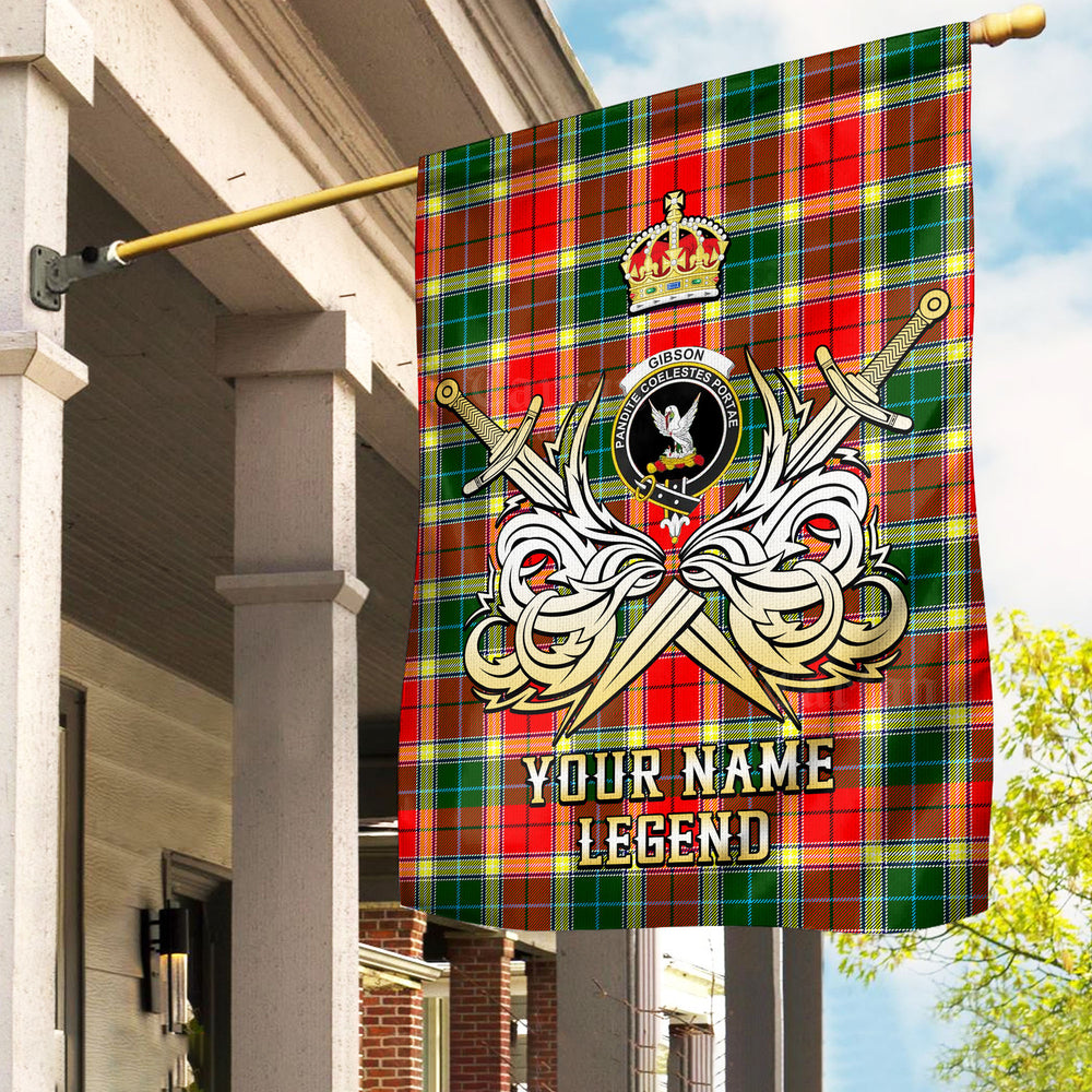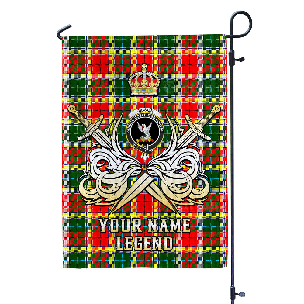 Custom Name Clan Gibbs Tartan Garden Flag with Clan Crest and the Golden Sword of Courageous Legacy IU57