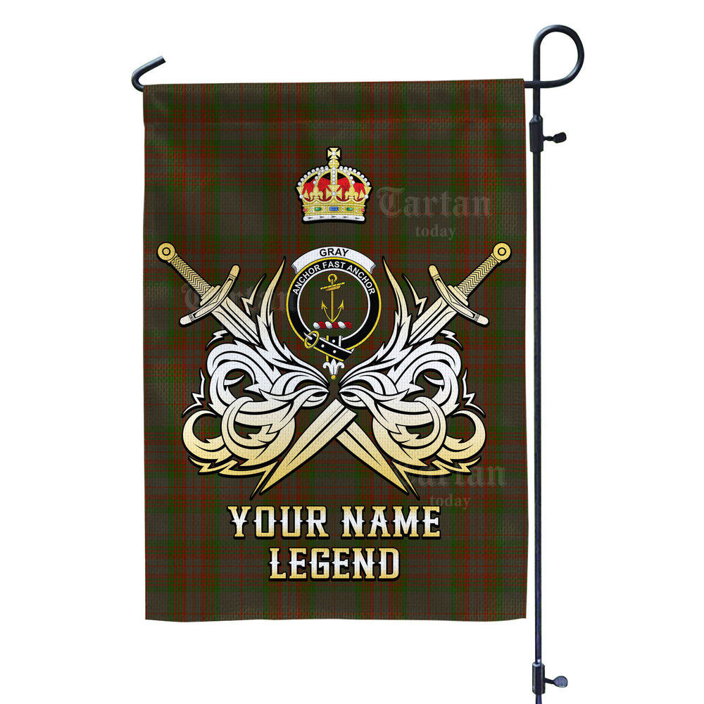 Personalized Custom Name Clan Gray Tartan Garden Flag with Clan Crest and the Golden Sword of Courageous Legacy OU36 - Gray Tartan Design, Scottish Heritage Gift