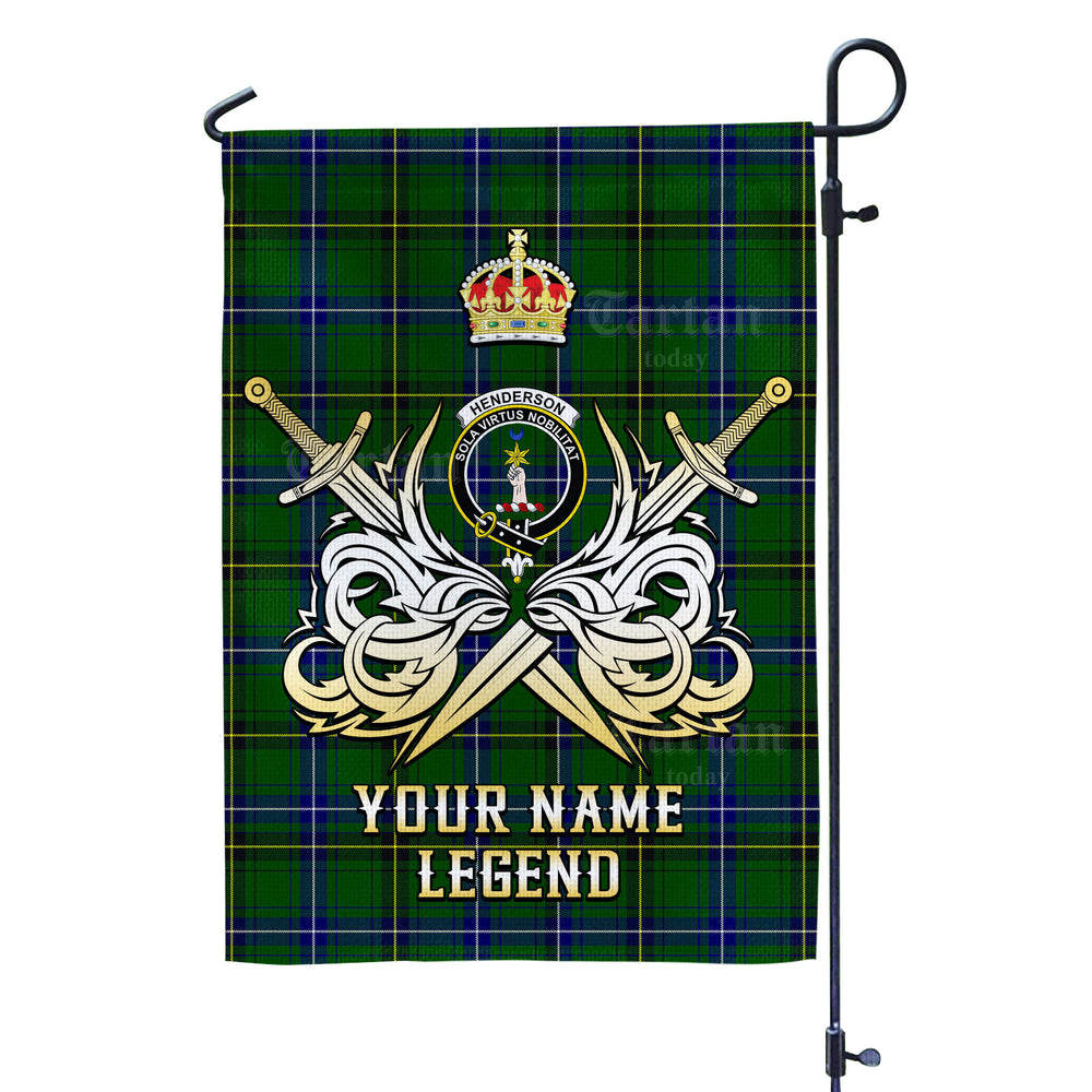 Custom Name Clan Henderson Modern Tartan Garden Flag with Clan Crest and the Golden Sword of Courageous Legacy AS19