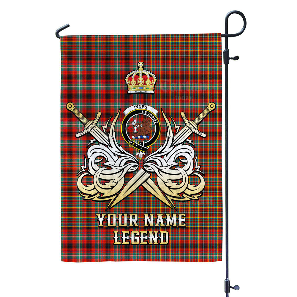 Custom Name Clan Innes Ancient Tartan Garden Flag with Clan Crest and the Golden Sword of Courageous Legacy DA76