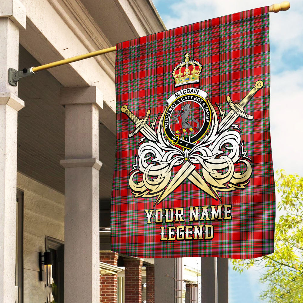Custom Name Clan MacBain Tartan Garden Flag with Clan Crest and the Golden Sword of Courageous Legacy PS25