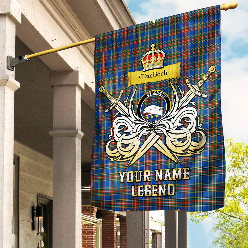 Custom Name Clan MacBeth Ancient Tartan Garden Flag with Clan Crest and the Golden Sword of Courageous Legacy YG38