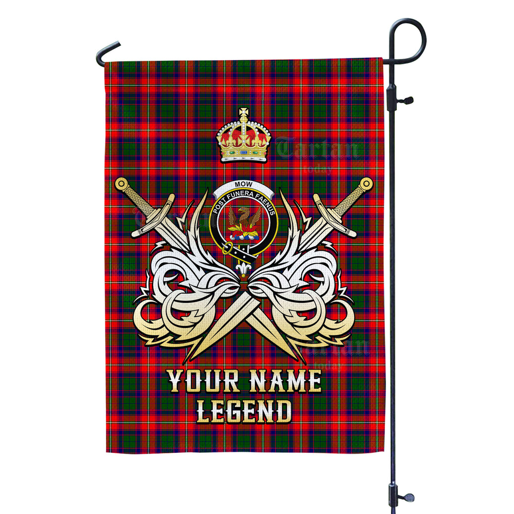 Custom Name Clan Mow (Roxburgh) Tartan Garden Flag with Clan Crest and the Golden Sword of Courageous Legacy RK81