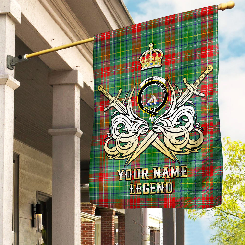 Custom Name Clan Muirhead Tartan Garden Flag with Clan Crest and the Golden Sword of Courageous Legacy OO88