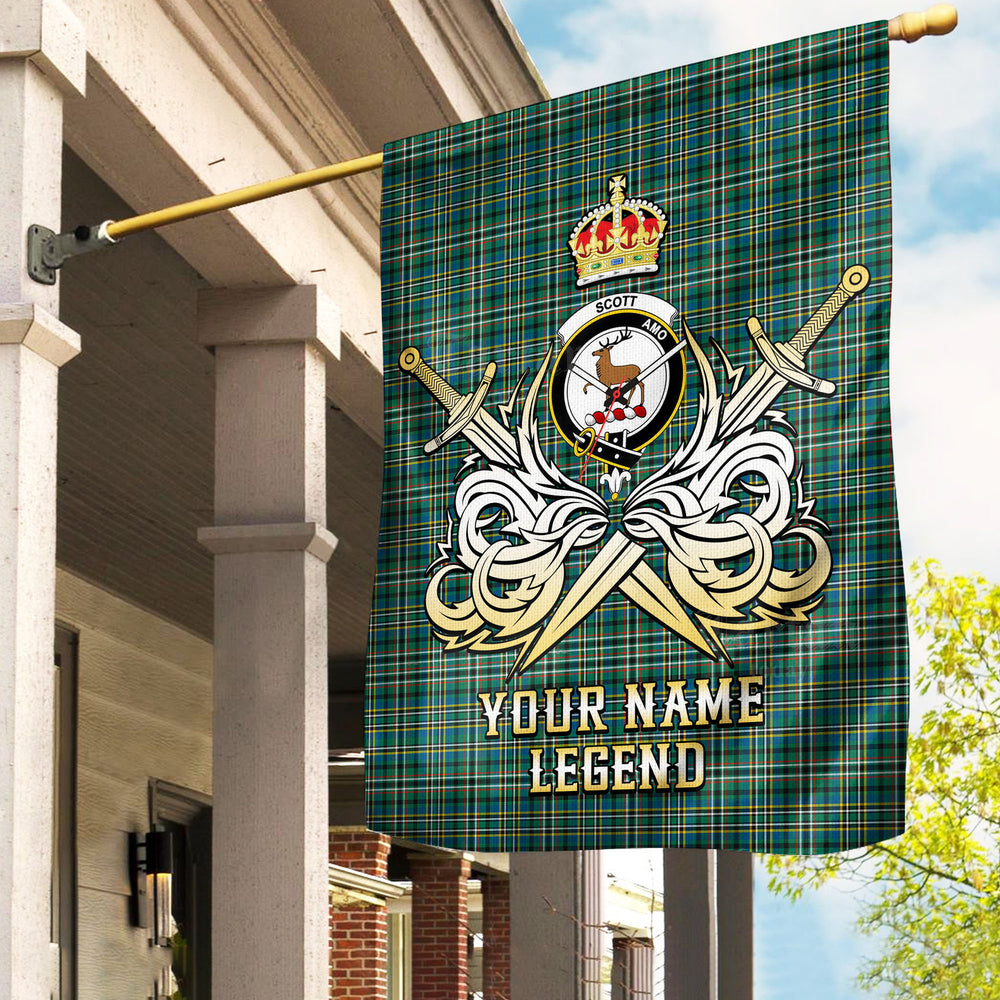 Custom Name Clan Scott Green Ancient Tartan Garden Flag with Clan Crest and the Golden Sword of Courageous Legacy AW14