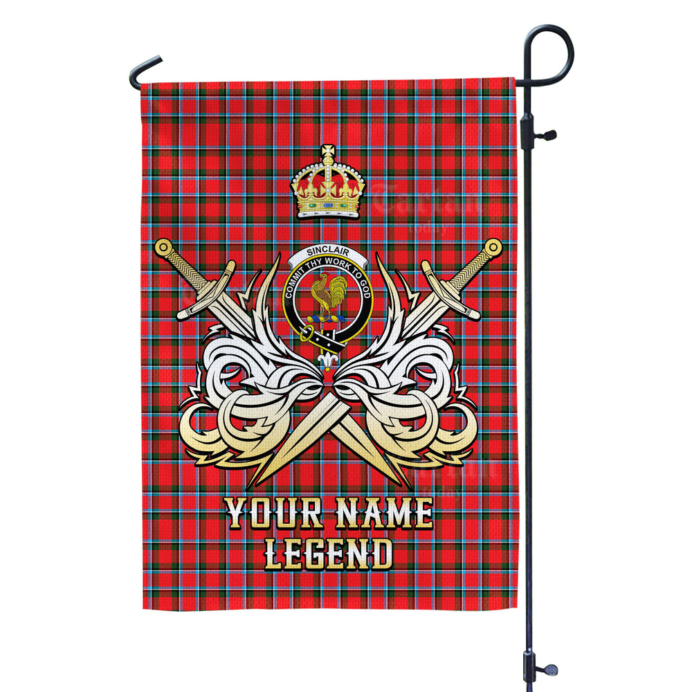 Custom Name Clan Sinclair Modern Tartan Garden Flag with Clan Crest and the Golden Sword of Courageous Legacy IV32
