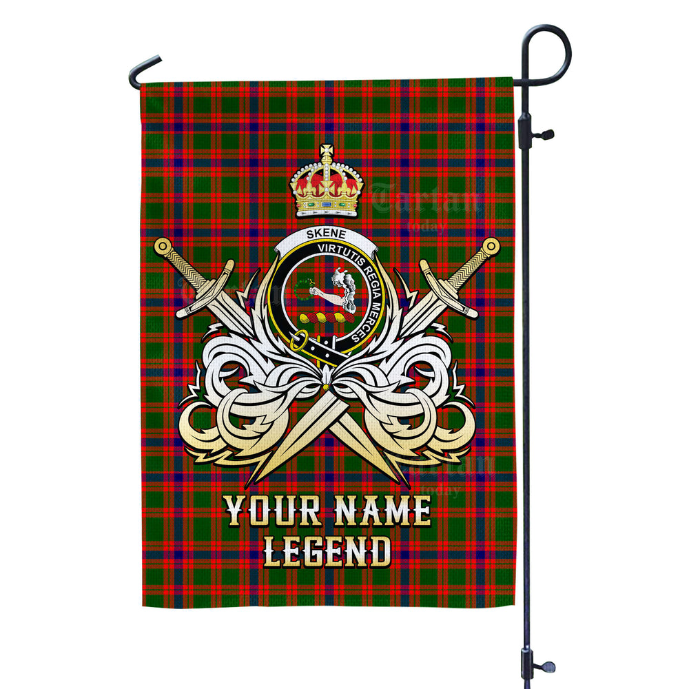 Custom Name Clan Skene Modern Tartan Garden Flag with Clan Crest and the Golden Sword of Courageous Legacy PD41