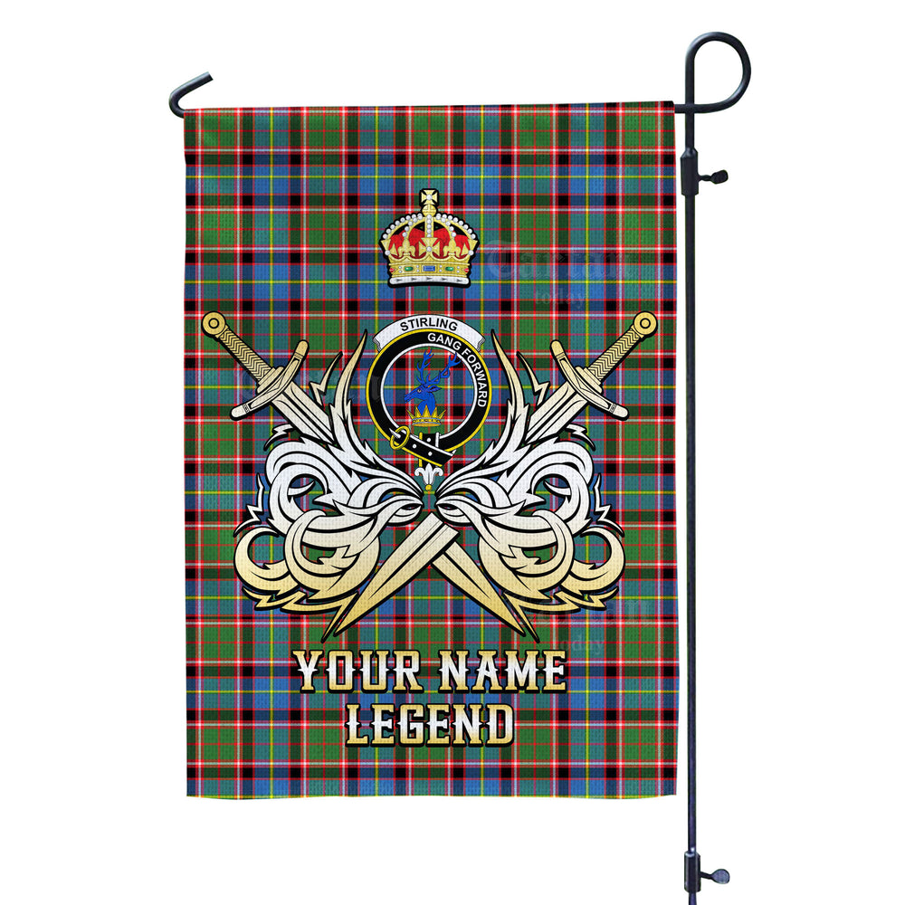 Custom Name Clan Stirling (of Cadder-Present Chief) Tartan Garden Flag with Clan Crest and the Golden Sword of Courageous Legacy QK38