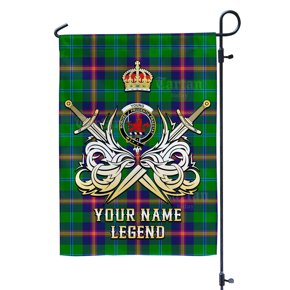 Custom Name Clan Young Modern Tartan Garden Flag with Clan Crest and the Golden Sword of Courageous Legacy GL21