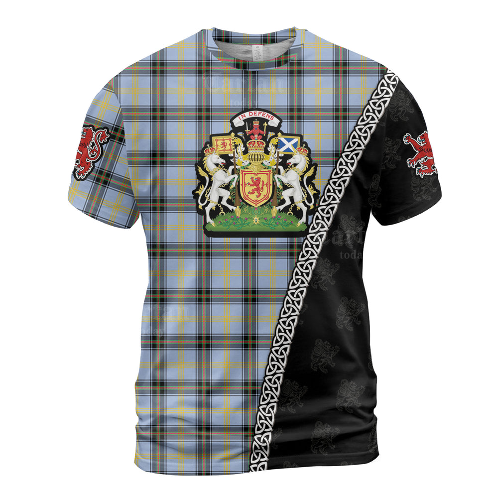 Crafted from breathable fabric, it combines traditional tartan style with modern design. The vibrant Bell of the Borders Tartan is accented by the historic Royal Coat of Arms of Scotland, symbolizing honor and legacy.