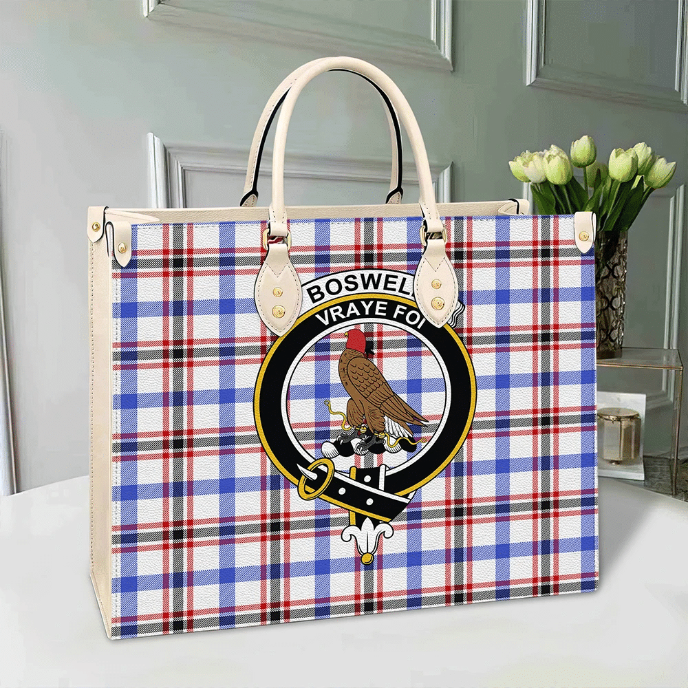 Clan Boswell Modern Tartan Crest Leather Bag LH50