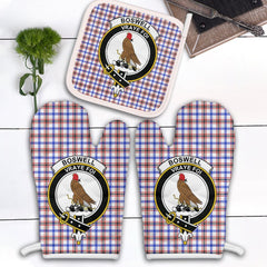 Clan Boswell Modern Tartan Crest Oven Mitt And Pot Holder (2 Oven Mitts + 1 Pot Holder) FW13