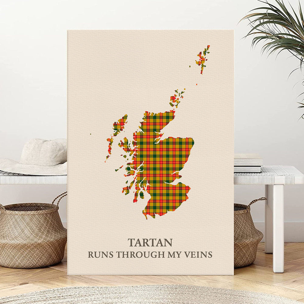 Celebrate your Scottish heritage with this striking canvas print featuring the map of Scotland filled with Baxter tartan, paired with the bold phrase: “Tartan Runs Through My Veins.” Whether you're honoring your clan roots or gifting a loved one, this artwork brings deep cultural pride and Highland elegance to your space.