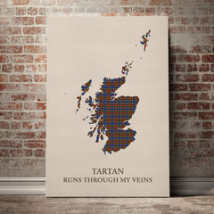 Clan Bethune Tartan Scotland Map Canvas “Tartan Runs Through My Veins” Wall Art AI41