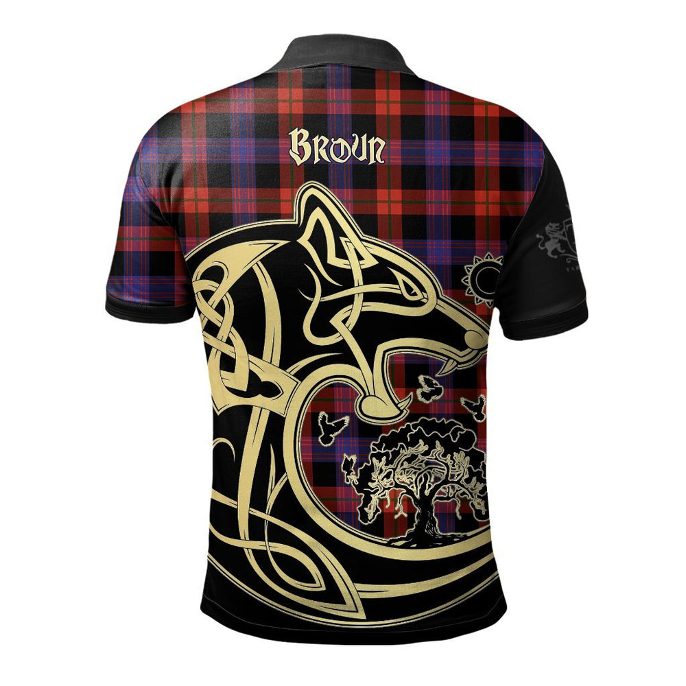 Clan Broun Modern Tartan Polo Shirt Viking Wolf OP95