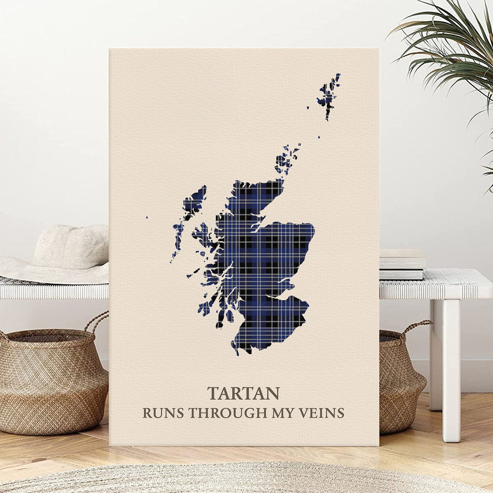 Celebrate your Scottish heritage with this striking canvas print featuring the map of Scotland filled with Clark 1 tartan, paired with the bold phrase: “Tartan Runs Through My Veins.” Whether you're honoring your clan roots or gifting a loved one, this artwork brings deep cultural pride and Highland elegance to your space.