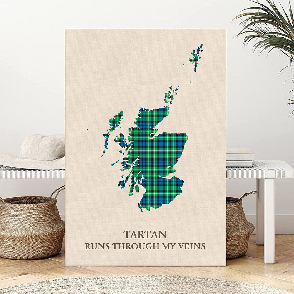Celebrate your Scottish heritage with this striking canvas print featuring the map of Scotland filled with Graham of Montrose Ancient tartan, paired with the bold phrase: “Tartan Runs Through My Veins.” Whether you're honoring your clan roots or gifting a loved one, this artwork brings deep cultural pride and Highland elegance to your space.