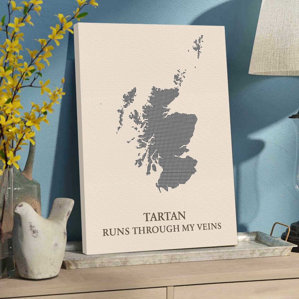 Celebrate your Scottish heritage with this striking canvas print featuring the map of Scotland filled with Shepherd tartan, paired with the bold phrase: “Tartan Runs Through My Veins.” Whether you're honoring your clan roots or gifting a loved one, this artwork brings deep cultural pride and Highland elegance to your space.