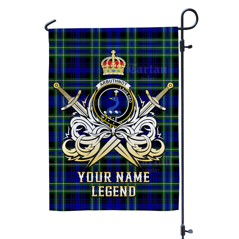 Custom Name Clan Arbuthnot Modern Tartan Garden Flag with Clan Crest and the Golden Sword of Courageous Legacy EU97