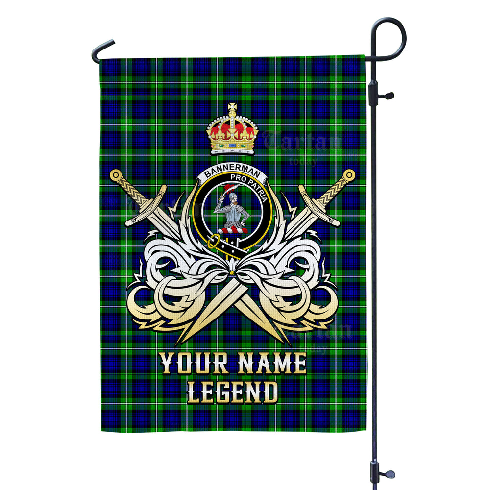 Custom Name Clan Bannerman Tartan Garden Flag with Clan Crest and the Golden Sword of Courageous Legacy UF72