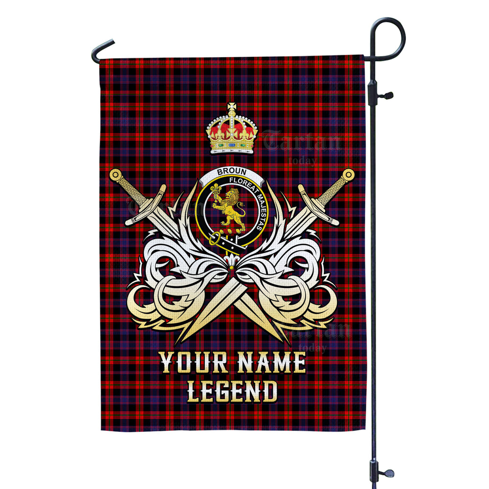 Custom Name Clan Broun Tartan Garden Flag with Clan Crest and the Golden Sword of Courageous Legacy LQ27